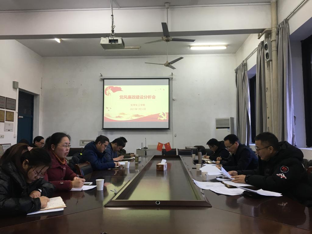 1�12日下午,化学化工学院召开�2020年度党风廉政建设分析会和党员领导干部民主生活会,会议由学院党委书记魏佩敏主持,校党委副书记张宏到会指导,校纪委委员王嫣、校党委组织部赵飞列席会议,学院党政班子成员、党委委员、纪委委员和党支部书记等出席会议�