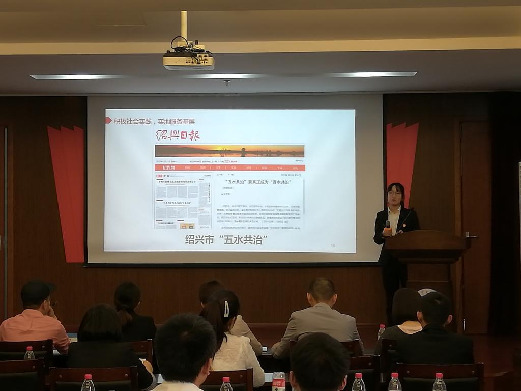 我院化学(师范)161班团支部与其他来自绍兴市各大中学校的入围团支部进行了现场展示,参赛选手根据抽签顺序依次上场,通过6-8分钟的陈述对参赛项目进行介绍。由评审专家根据评分标准评分,依据名次情况确定入围绍兴市级决赛的项目�